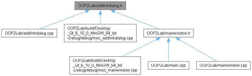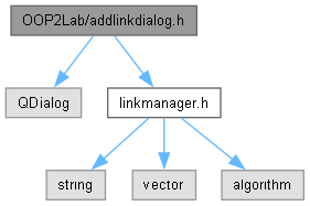 Діаграма включених заголовочних файлів для addlinkdialog.h: