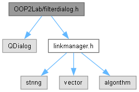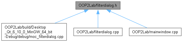 Діаграма включених заголовочних файлів для filterdialog.h: